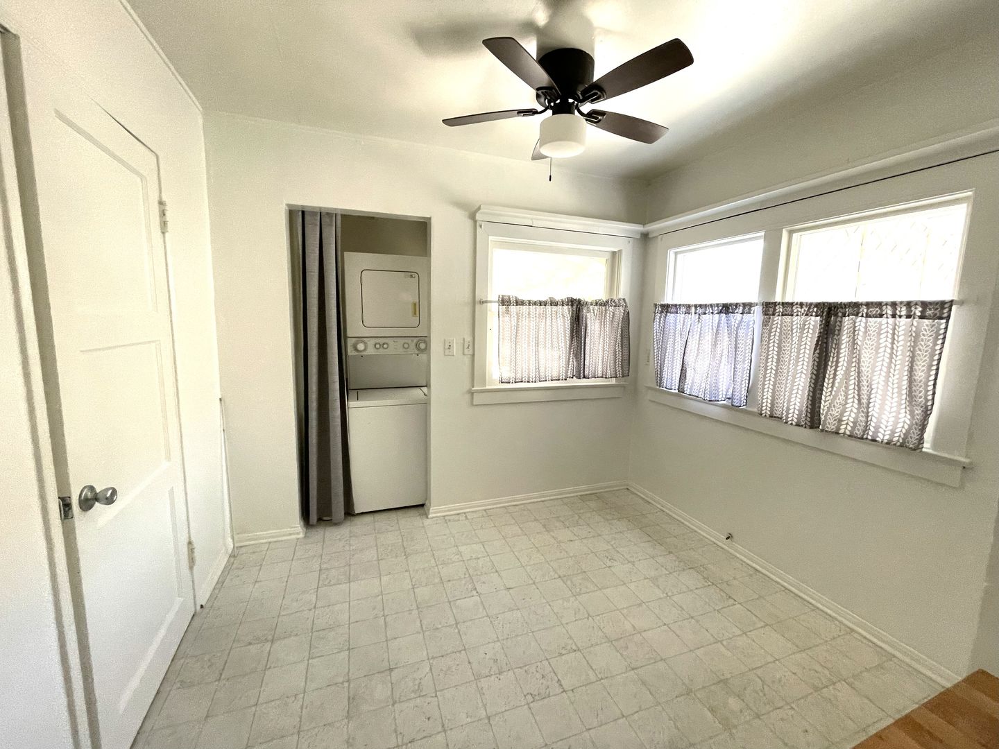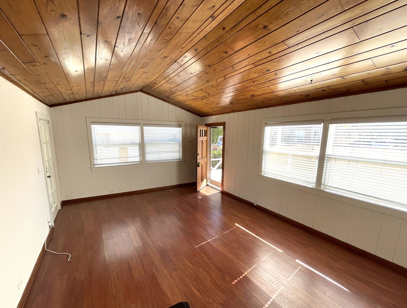 This North Redondo home features vaulted wood ceilings, laminate flooring, new paint and several outdoor spaces. The kitchen has been upgraded with granite counters, refinished maple cabinets, stainless gas range, micro-hood, dishwasher and courtesy refrigerator . A free-standing butcherblock island, eating area and stackable washer/dryer complete the kitchen. There's also a small enclosed office or storage space just off the kitchen. The primary bathroom features a shower and the hall bath has a tub/shower combo. Both bedrooms and hall have new carpet. Take advantage of the Southern California climate and enjoy your porch area off the living room, the private front patio and the shared rear yard. 2 car private garage parking. No smoking, no pets. Call for appt to view. Marine View Management. 310-373-3599.
