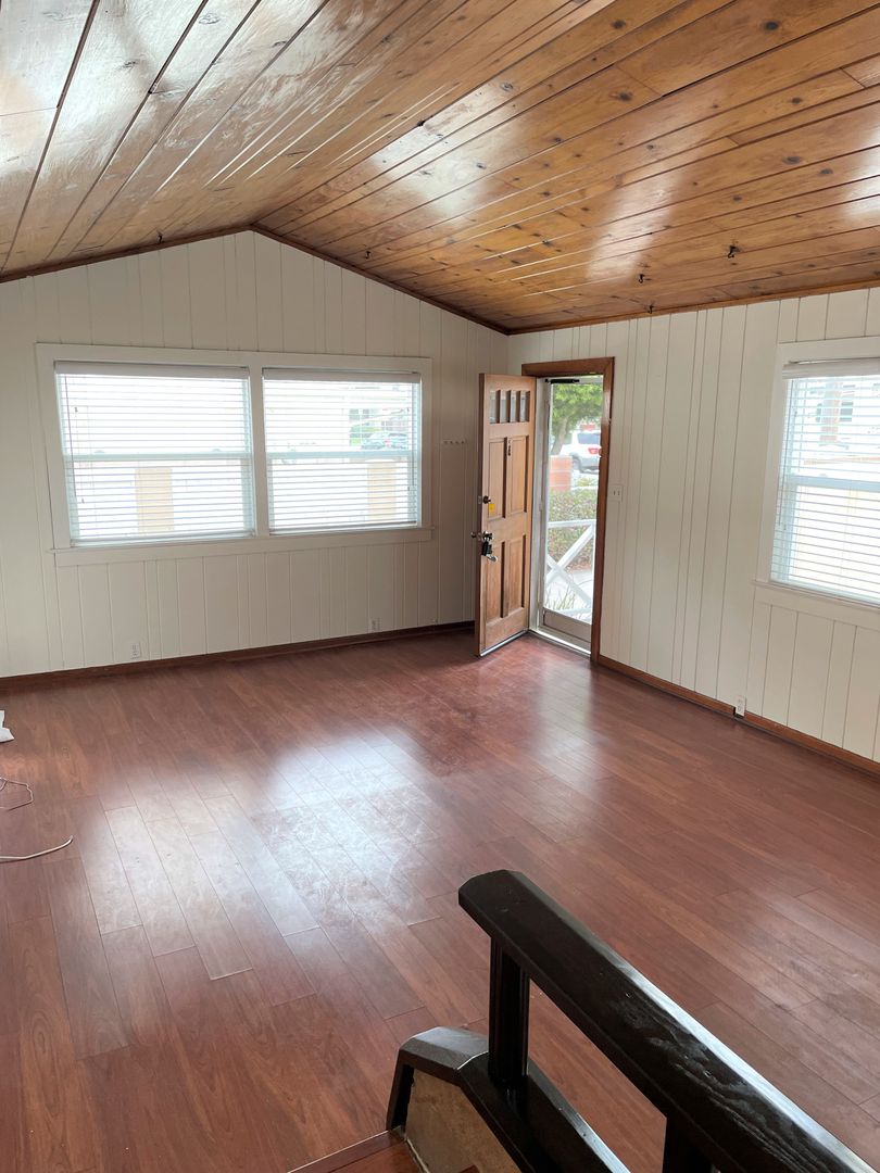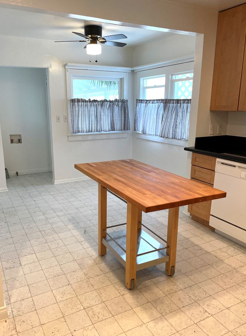 This North Redondo home features vaulted wood ceilings, laminate flooring, fresh paint and several outdoor spaces. The kitchen  has been upgraded with granite counters, refinished maple cabinets and  stainless gas range and micro-hood. A free-standing butcherblock island, eating area and dishwasher complete the kitchen.  There's also a stackable washer/dryer and an enclosed office space.  The primary bathroom features a shower and the hall bath has a tub/shower combo. Both bedrooms and hall have new carpet.  Take advantage of the Southern California climate and enjoy your porch area off the living room, the private front patio and the shared rear yard. 2 car private garage parking. No smoking, no pets.  Call for appt to view. Marine View Management.  310-373-3599.