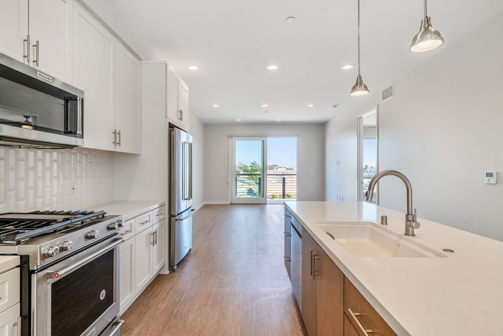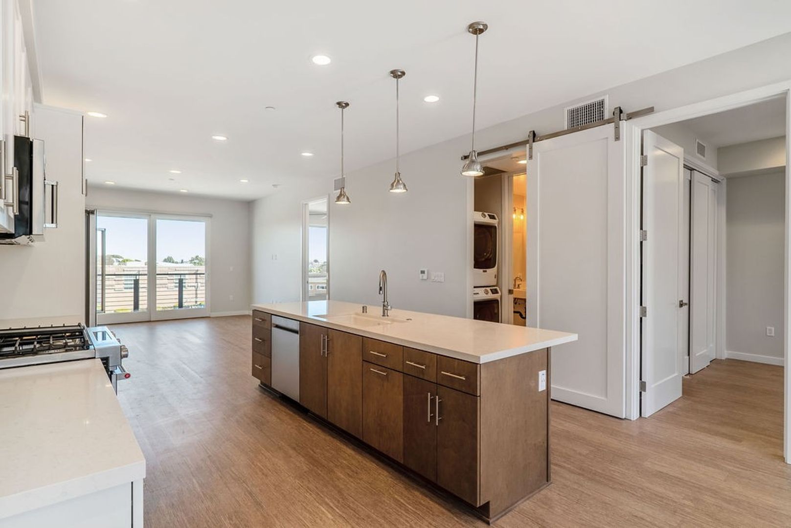 Luxury contemporary living in Manhattan Beach! Two bedrooms, 2 bath loft with 1131 square feet of living space and 9 1/2 foot ceilings. Newer contemporary living with secure building access, elevator, and underground parking for two cars side-by-side. Gourmet kitchen with quartz countertops, large kitchen island, and stainless steel appliances including oven/range, refrigerator, dishwasher, microwave! Master suite with walk-in closet and an ensuite bath with dual vanity sinks. Loft includes built in washer and dryer, the latest barn door closet doors, recessed lighting, extra large custom windows for natural lighting and a private balcony with city and mountain views. Air conditioning. Prewired for CAT 5 internet, phone, and cable. Great location close to Manhattan Beach schools, parks, Lazy Acres, Coffee Bean, and a short bike ride to the beach!