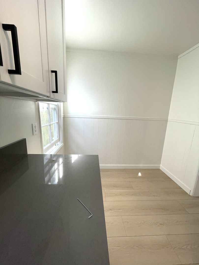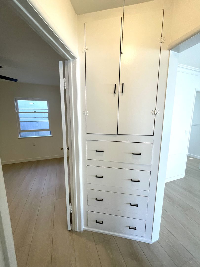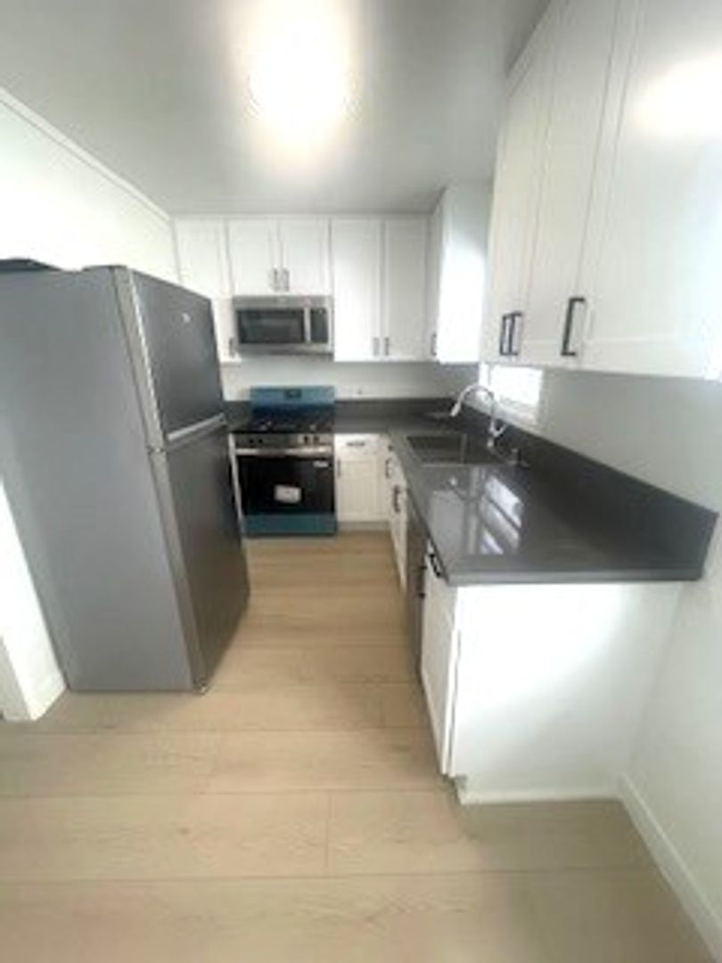You'll love this cozy, one bedroom unit with new paint and flooring throughout. The kitchen features all new cabinets plus stainless appliances including gas range, refrigerator and microwave, along with a space for table and chairs. There's a new oversized window in the living area to let in plenty of daylight. The bedroom offers a removable storage unit plus the regular closet and there's a cabinet just outside in the hall for clothes or linens. You'll find a stand up shower and new tile flooring in the bathroom. The unit comes with a stackable washer/dryer in the private 2 car garage and you can enjoy the shared grassy area at the rear of the property. Don't miss out on this ideally located North Redondo unit.