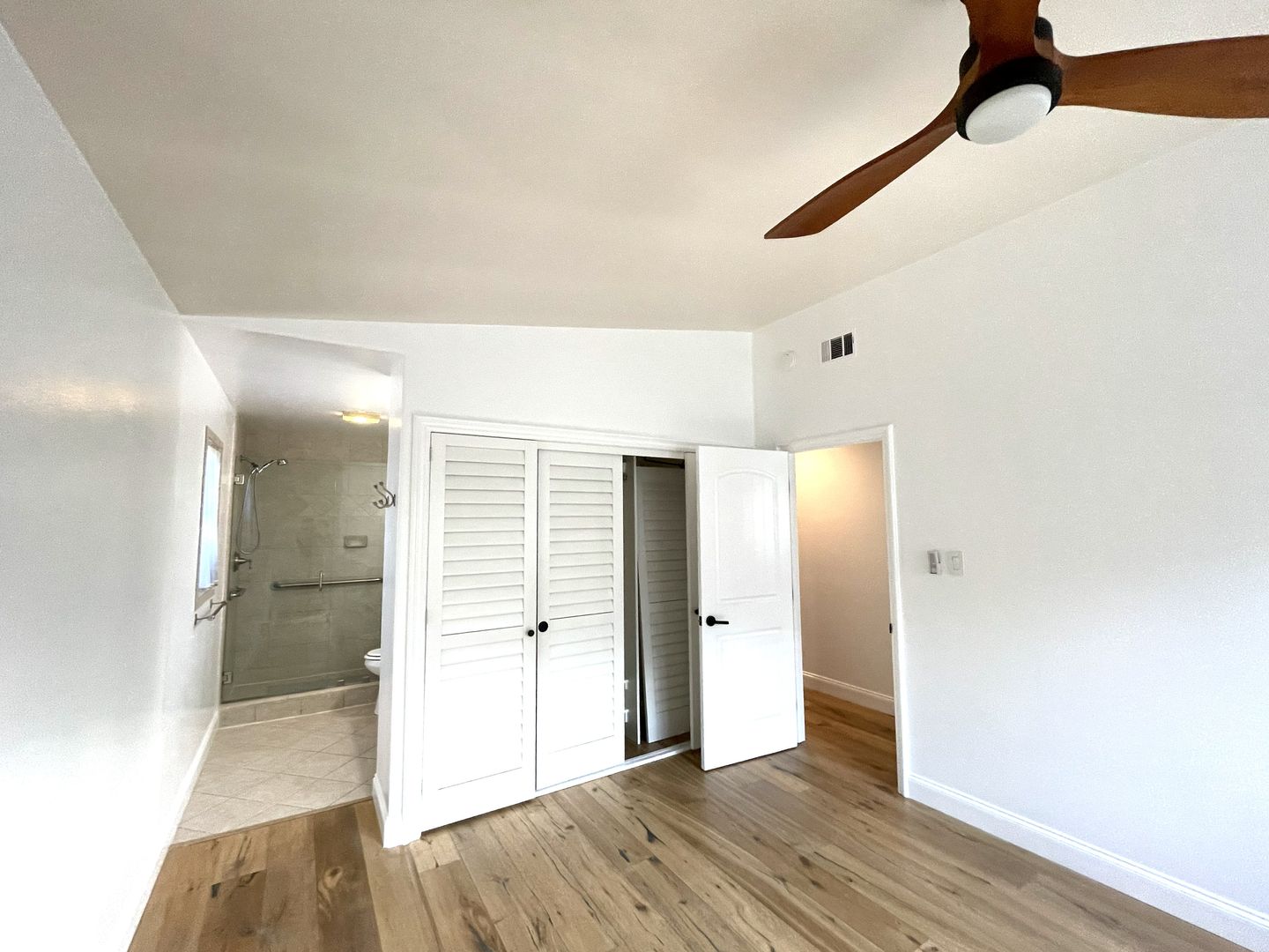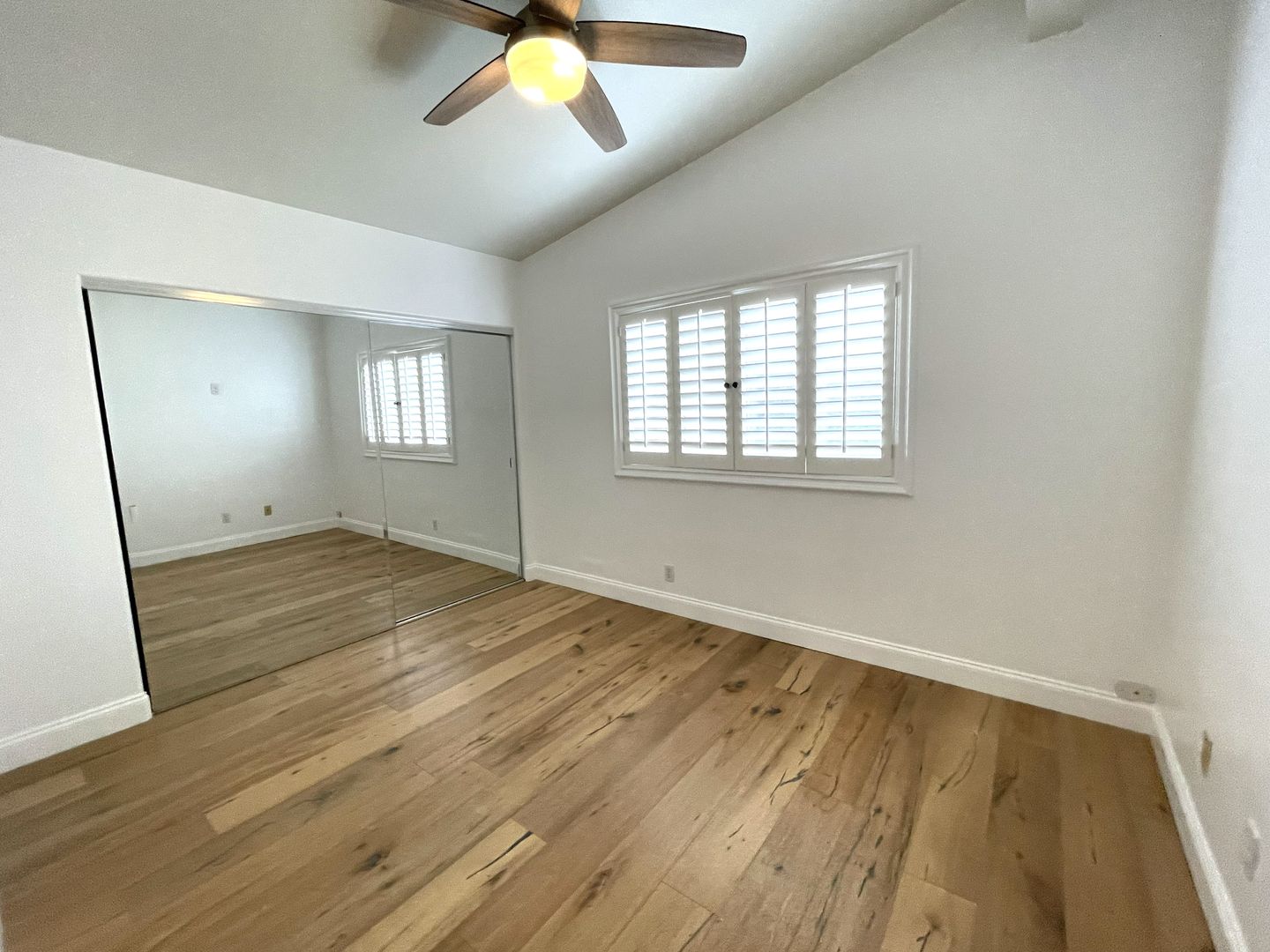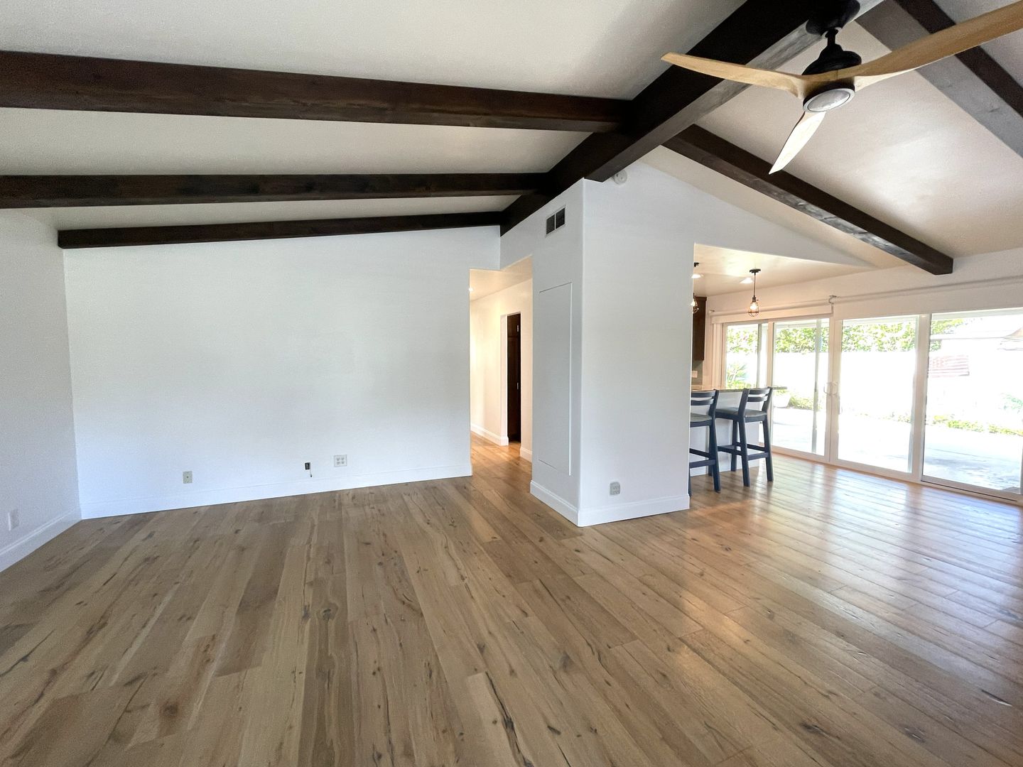 You'll love the warmth of this home with wide plank wood floors, custom paint, shutters and nice finishes throughout. The living and dining area has wood beamed, vaulted ceilings and is open to a wall of sliding doors leading to the covered patio and spacious outdoor area with fire pit. The kitchen boasts a breakfast bar, stainless appliances including courtesy refrigerator, 6 burner gas range, microwave and dishwasher, plus plenty of cabinet space. Each of the bedrooms has ceiling fans and closet organizers.  The primary bath has an oversized walk-in shower and the hall bathroom features colorful tile and a tub/shower. There's laundry hookups in the 2 car garage, driveway parking plus RV parking. No smoking, no pets please. Ideally located across from Victor park and less than a mile to elementary, middle and high schools, don't miss out on this ideally located home.  Call Marine View Management for appointment to view: 310-373-3599.