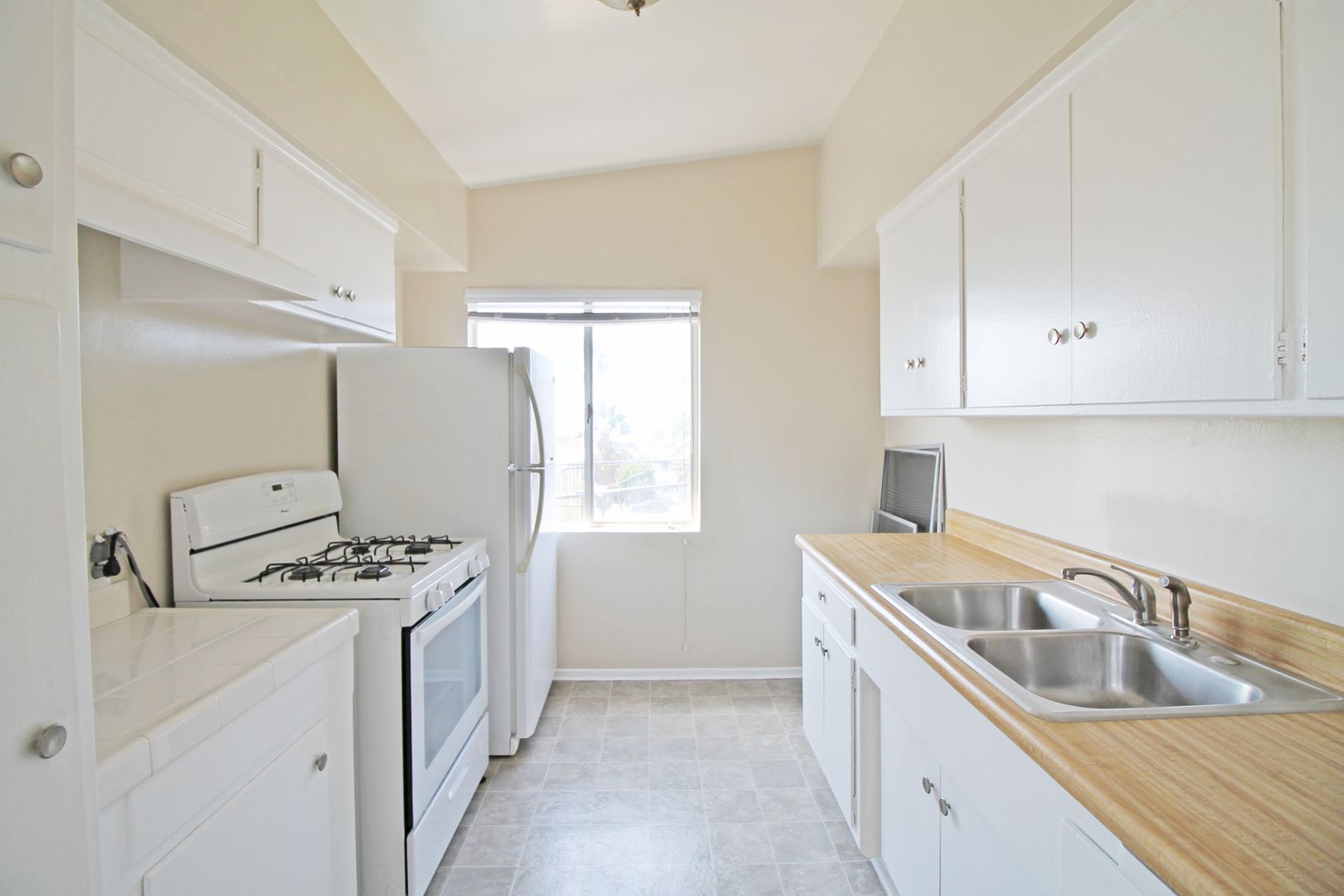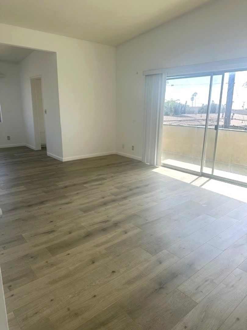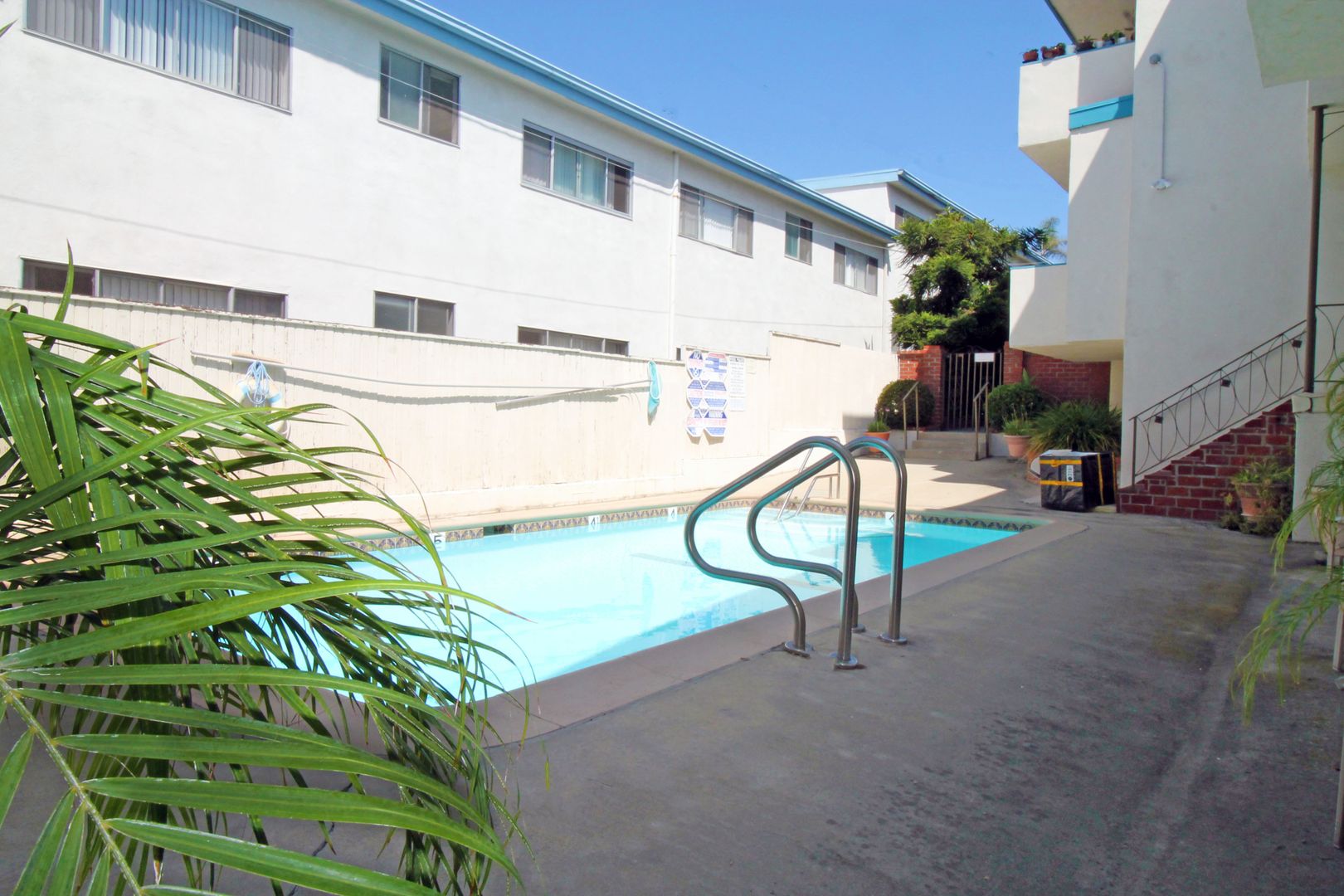 Upper Rear 2 bdrm unit.  Great ocean views from the living area and balcony of this unit.  Kitchen includes stove and refrigerator.  Good sized bedrooms with hallway bathroom.  Nice new laminate wood floors throughout living area. Master bedroom with private master bathroom.  New carpet in bedrooms and new paint throughout. 1 car carport parking with storage.  Coin laundry on site.  Community pool.  Steps to the Riviera with great restaurants and shops.  1 year lease. No smoking. No pets.